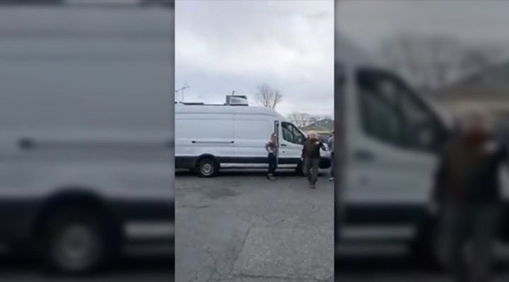 As soon as DiMaria figured out what was going down, he took out his phone and started recording. He explained where he was and a bit about the alleged puppy mill puppies being delivered when a woman steps up to the car and begins filming him on her own cell phone. She is then followed by a bearded, angry man.